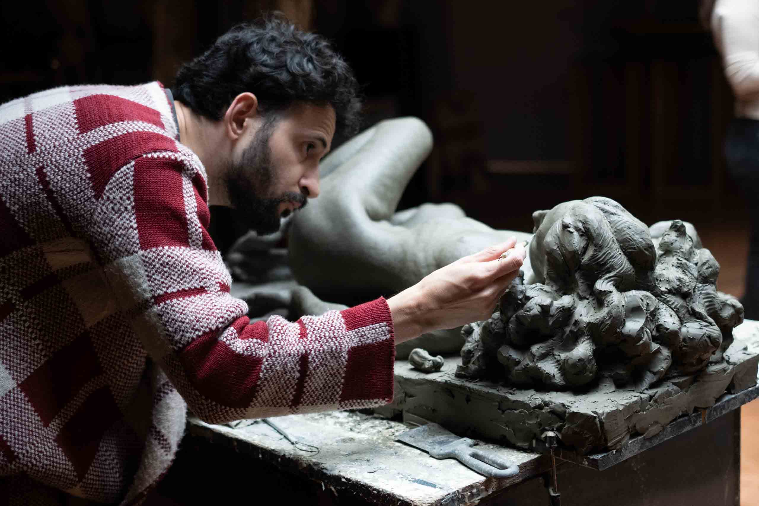 “I am a 37-year-old sculptor from Brazil. I am interested in figurative art as a framework that can offer both a set of constraints in which to exercise creativity and also as a platform for communication with the viewer. This can be through work that is adjacent to a tradition (thus understandable in a rational sense) or through the innate empathic response that the human figure can evoke. During my residency at the FAA, a multicultural institution of excellence, I am reflecting on my own cultural background and on how to best present these cultural elements to our community. I have also been considering a pathway outside of tradition, hoping to find a personal aesthetic language in the exploration of color, texture, and translucency through material experimentation during the casting process.”