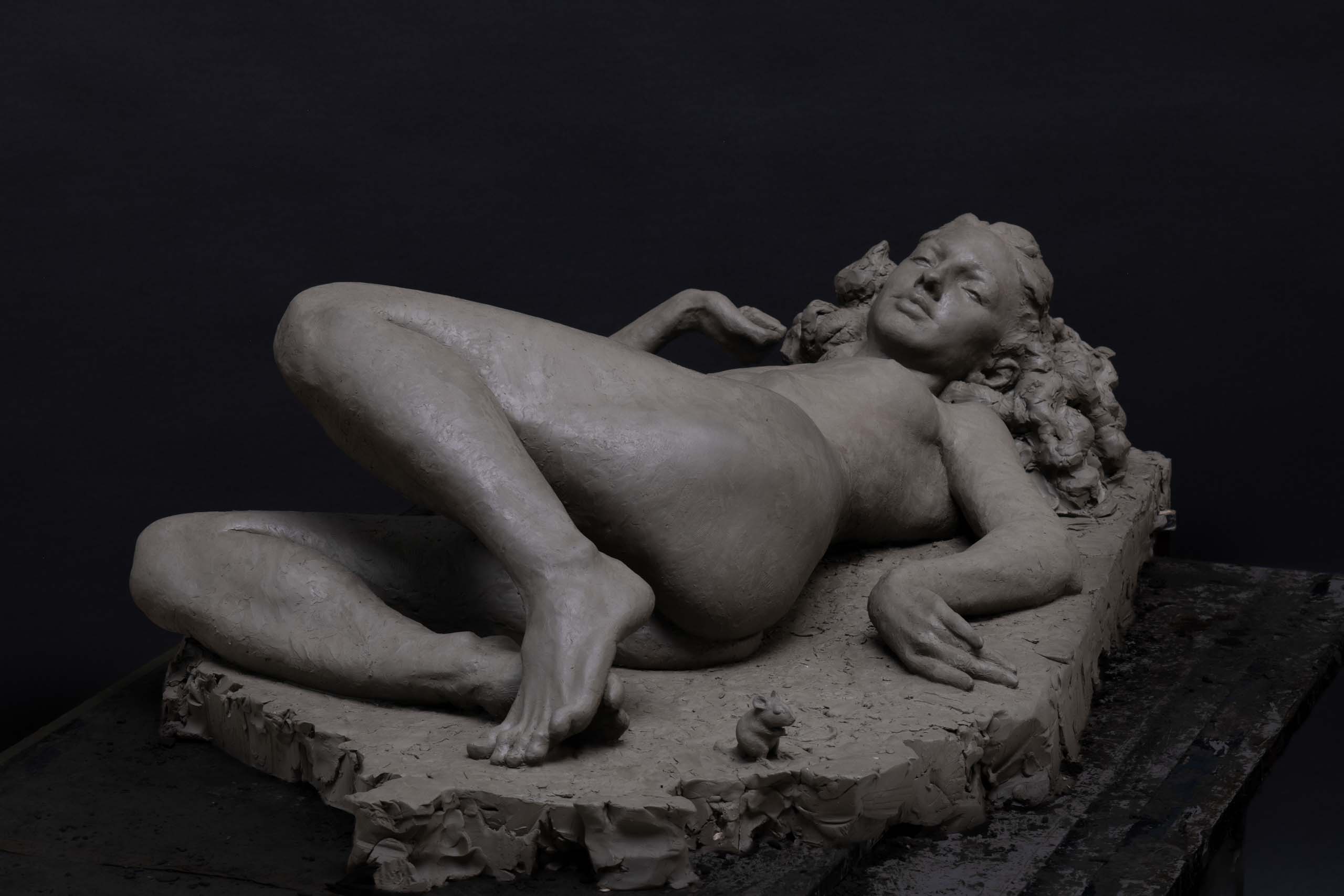 Gabriel Montechiari e Silva, 3/4 life-size reclining figure, completed in his third year of study in water-based clay