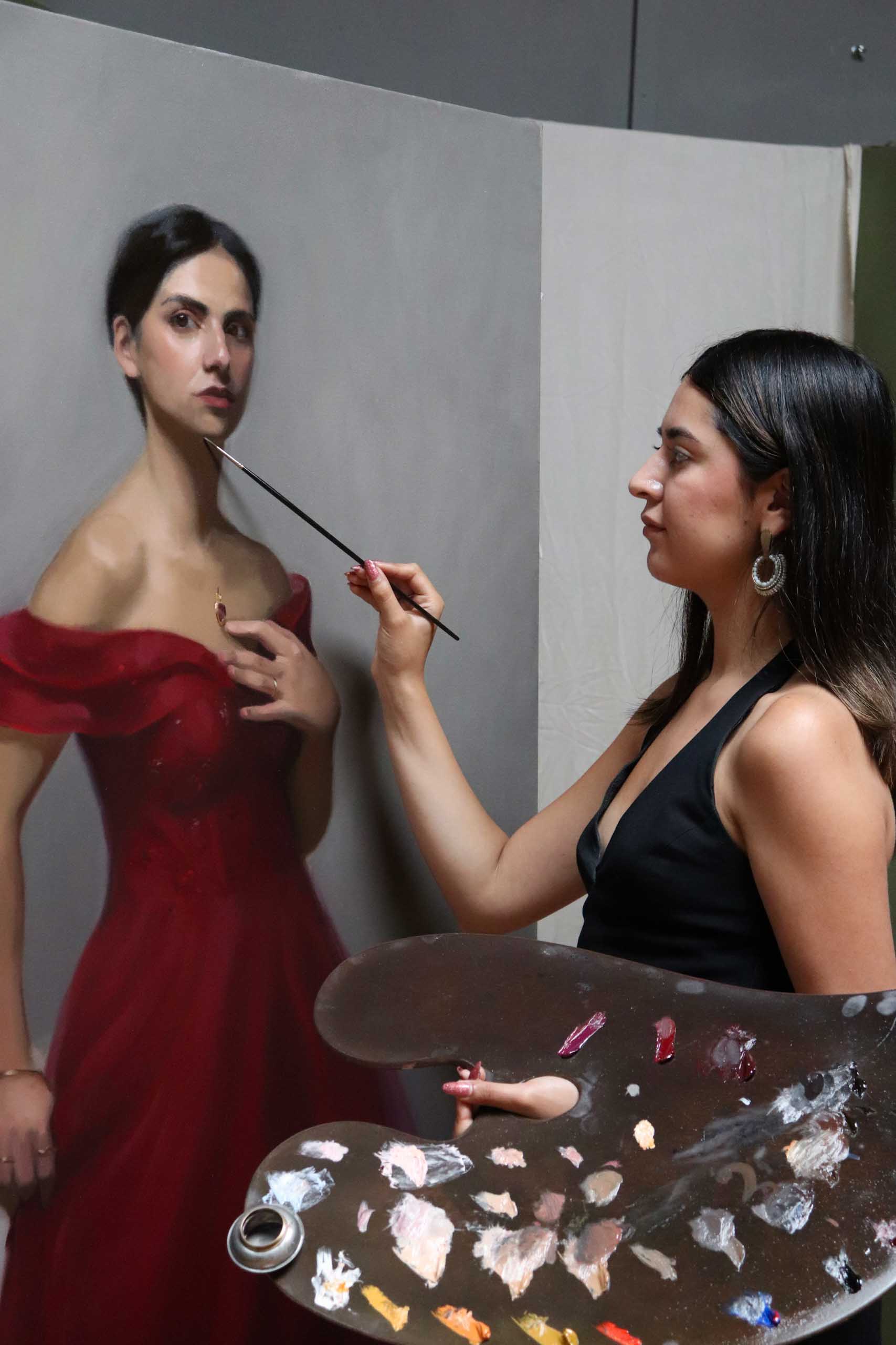 Laura Espinosa, Final project, Portrait with Hands, painted in her third year of study